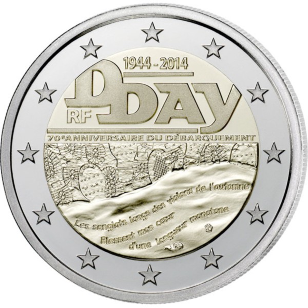 In the coin’s central field the word D-DAY is
