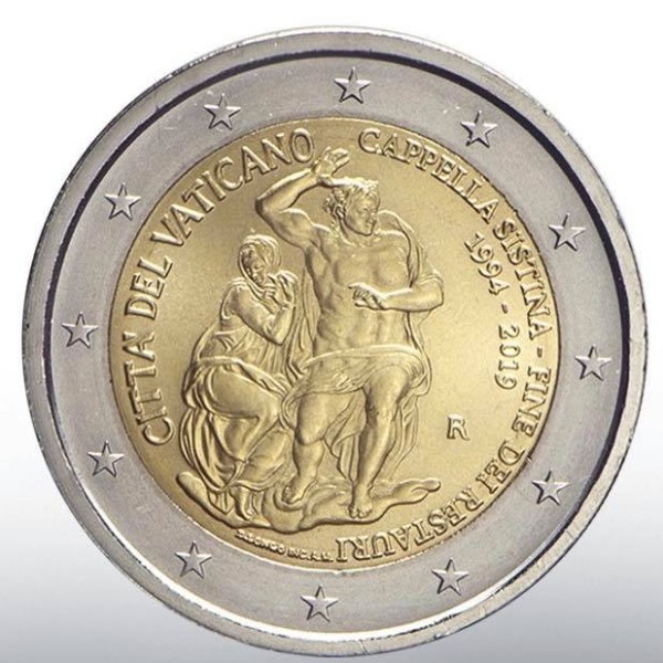 the inscriptions ‘CAPPELLA SISTINA — FINE DEI RESTAURI’ and ‘1994-2019’. At the
