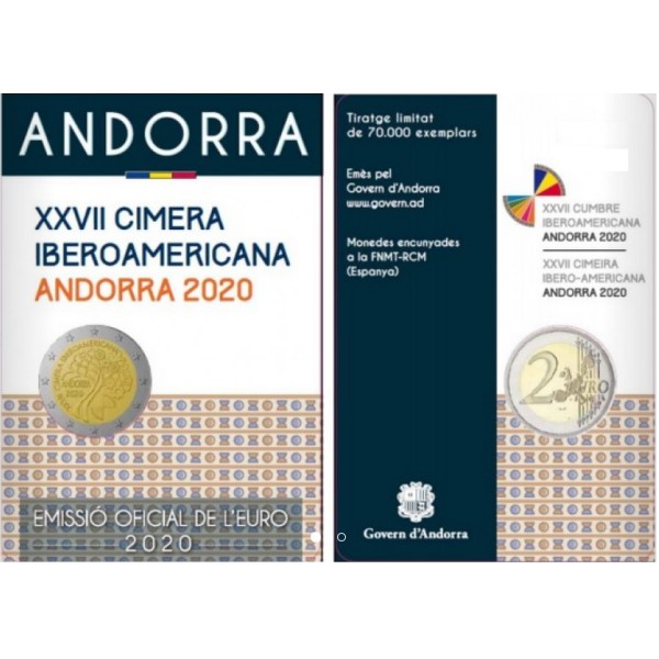 This Andorra commemorative coin is dedicated to The 27th Ibero-American Summit in Andorra. The 27th Ibero-American Summit of Heads of State and Government will be held in the Principality of Andorra in 2020. Andorra, the newest and smallest member of the Ibero-American Conference, will host this meeting of the highest political level, which comprises 19 Latin American countries together with Spain, Portugal and Andorra, in order to work towards common goals such as Sustainable Development. The design of the coin shows a tree made up by human silhouettes and tine wheels. The human silhouettes symbolize the integration of society, culture and education for the realization of a sustainable future. The tine wheels symbolize the synergy of movement between the ideas and proposals of participants to this Summit. Next to the tree, there is the logo of this 27th Summit. On its upper side, three triangles represent the colours of the Andorran flag. On its lower side, six triangles represent Andorra’s opening towards Sustainable Development Goals. Around the design, there is the inscription ‘XXVII CIMERA IBEROAMERICANA ANDORRA 2020’ (27th Ibero-American Summit Andorra 2020). The coin’s outer ring bears the 12 stars of the European flag.
